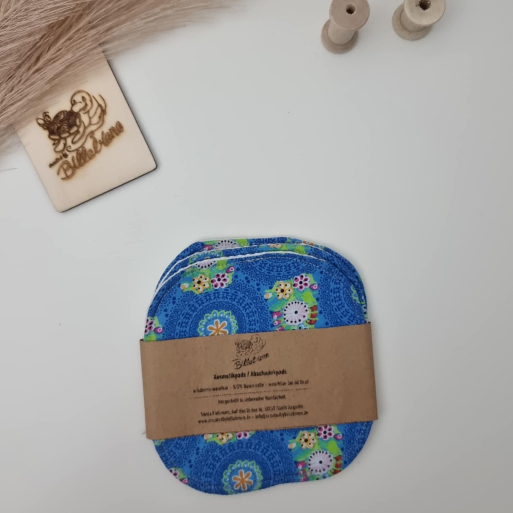 Abschminkpads waschbar aus Baumwolle – Blumen/blau im 3er Set