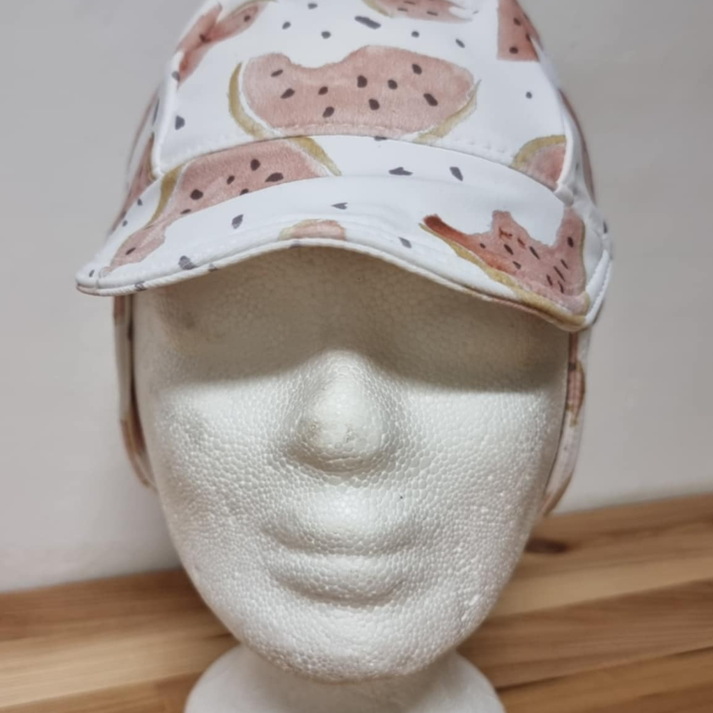 UV-Sonnenhut – mitwachsend KU 44-48 cm, Design Melone, Hauptstoff: UV Lycra 74 % recyceltes Polyester, 26 % Elasthan, Bindeband 100% Baumwolle